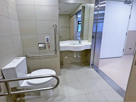 寬敞迴轉空間 : 無障礙門檻,符合輪椅進出與轉向需求。